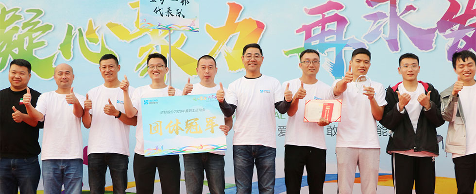 希望所有诺邦人将运动赛场上敢于拼搏、勇于突破的精神,延续到工作生活中;将团结一致、坚忍不拔的精神,发扬到工作中生活中。将“爱表现、敢冒尖、能折腾”的九字活力文化、正能量文化传扬到每一天的工作中、践行在每一日的行动中!